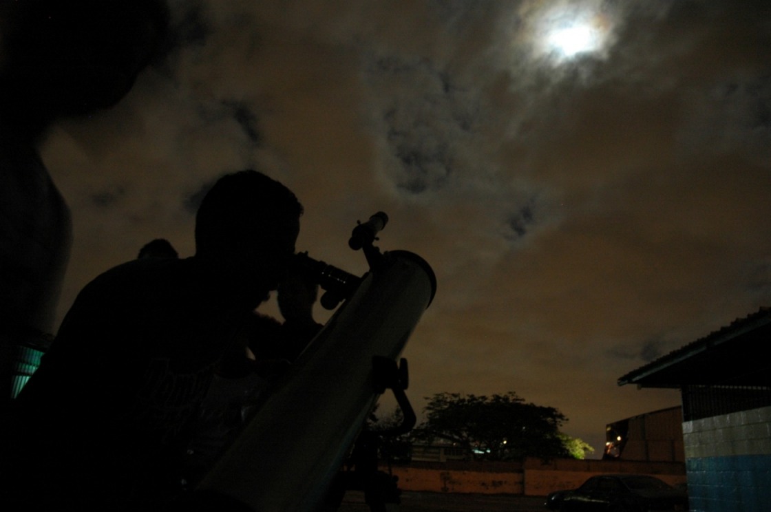 Los niños aprovechaban cualquier instante de claridad para observar la Luna.