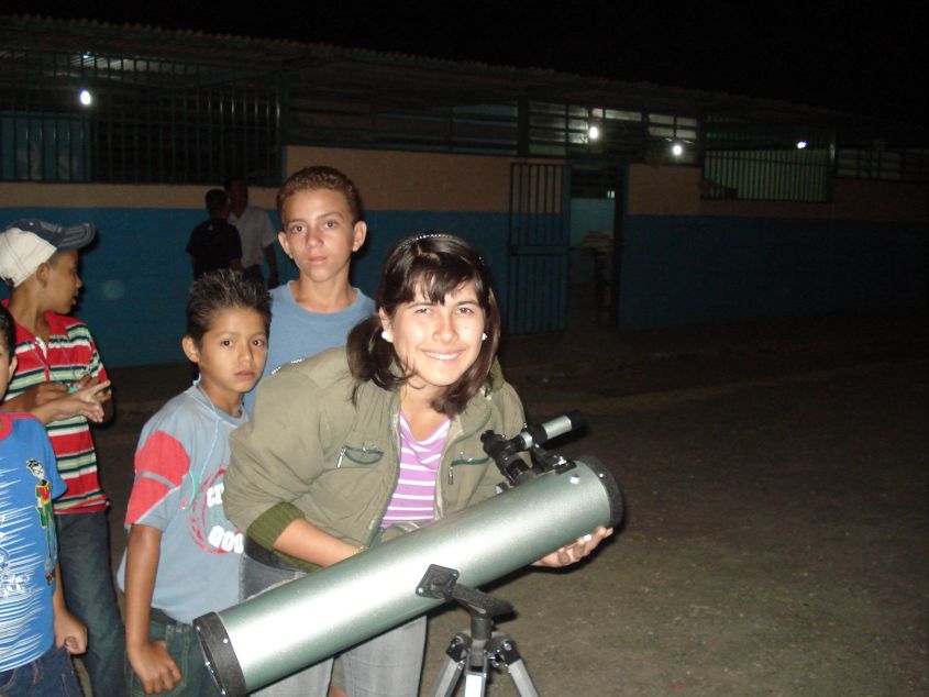 Julieta coordinando las observaciones desde su telescopio.