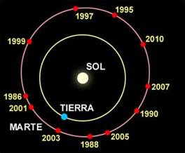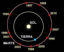 cada dos años, los planetas Marte y