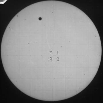 Una de las pocas placas fotográficas que se lograron obtener del tránsito de Venus del año 1882. Esta placa pertenece al Observatorio Naval de los Estados Unidos (USNO).