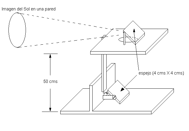 En el Proyector Solar, desarrollado en ALDA por Alexis Peña, se utilizan dos pequeños espejos y una sencilla estructura de madera que se puede armar en pocas horas.