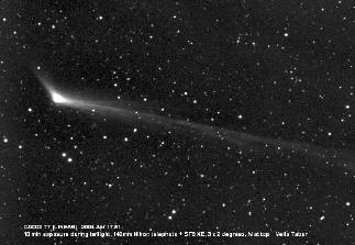 El cometa se encuentra en cuarta magnitud y las últimas imágenes muestran una actividad interesante en su coma. Tal parece que se está produciendo desprendimientos de material cometario, que por su tamaño, son atraídos hacia un extremo, en lugar de ser expelidos por el viento solar.