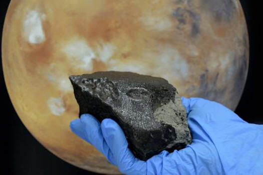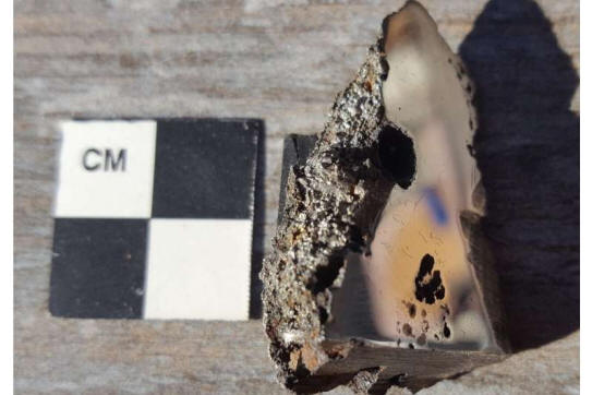 ![]() Una porción del meteorito El Ali, ahora alojado en la Colección de Meteoritos de la U of A, contiene dos minerales nunca antes vistos en la Tierra. Crédito: Universidad de Alberta.