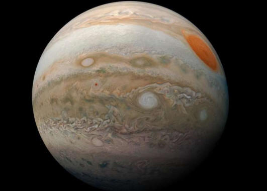 ![]() La agitada atmósfera de Júpiter capturada por la misión Juno de la NASA. Crédito: NASA