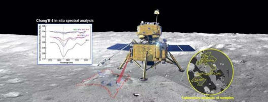 Un equipo de investigación conjunto dirigido por los Profesores Lin Yangting y Lin Honglei del Instituto de Geología y Geofísica de la Academia de Ciencias de China (IGGCAS) observaron señales de agua en datos espectrales de reflectancia de la superficie lunar adquiridos por el módulo de aterrizaje Chang'E-5, proporcionando la primera evidencia de in-situ de detección de agua en la Luna. El estudio fue publicado en la revista Science Advances el 7 de enero.