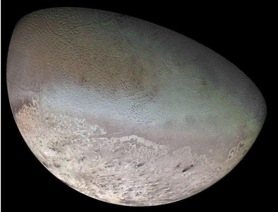 ![]() En esta imagen en color falso de la superficie de Europa tomada por la nave espacial Galileo el 26 de septiembre de 1998, se ve un patrón complejo de crestas y bandas llamado Arachne Linea. Una nueva investigación muestra que este paisaje se formó por el empuje de las placas tectónicas cercanas. Crédito: NASA/JPL-Caltech/Instituto SETI.