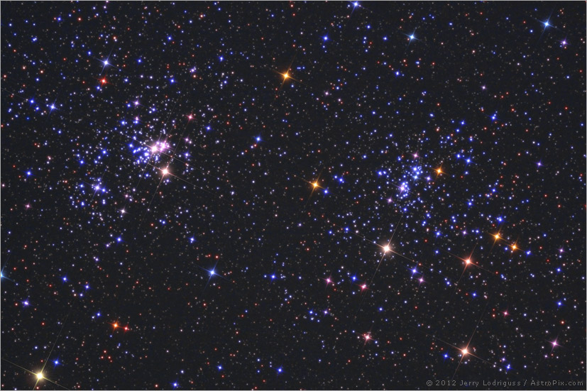 Los cúmulos estelares abiertos, NGC 869 (a la izquierda) y NGC 884, constituyen el conocido doble cúmulo de Perseo.