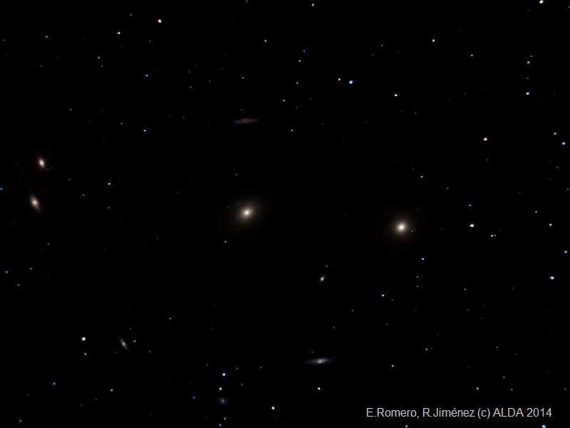 La imagen nos muestra a dos de sus más brillantes componentes: M84 (a la derecha) y M86, ambas galaxias lenticulares, descubiertas por Charles Messier en 1781.