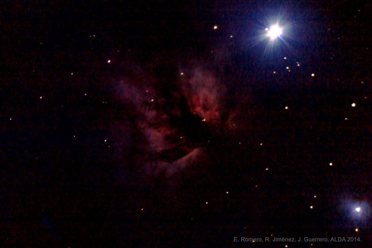 También conocida como NGC 2024, el color rojizo de la misma se debe a la ionización que hace del gas hidrógeno, la cercanía de estrellas.
