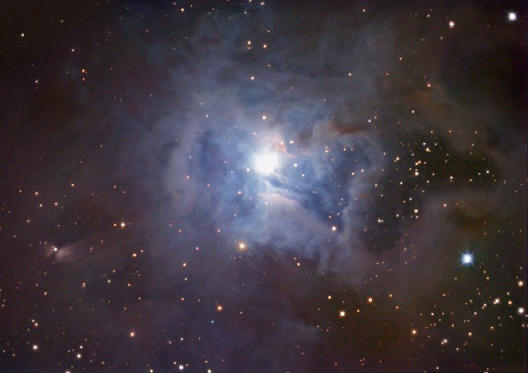 Como delicados pétalos cósmicos, esta nube de gas y polvo interestelar floreció a 1.300 años-luz de distancia, en los fecundos campos de estrellas de la constelación de Cefeo (Cepheus). Llamada a veces la Nebulosa del Lirio y catalogada cómo NGC 7023, ésta no es la única nebulosa en el cielo que evoca con su imagen a las flores. Dentro de la nebulosa, material nebular rodea a una masiva y caliente estrella joven, que se encuentra en sus etapas iniciales. Los filamentos centrales de polvo cósmico, al igual que los granos de polvo, brillan con una fotoluminiscencia rojiza por la efectiva conversión en luz visible de la invisible radiación ultravioleta de la luz de la estrella. La tonalidad dominante es la azul, característico de granos de polvo que reflejan la luz de las estrellas. Las nubes de polvo oscuro y frío gas molecular le terminan de dar formas fantásticas a la nebulosa. Las observaciones infrarrojas indican que puede contener complejas moléculas de carbono, conocidas como PAH. Tiene una extensión de unos 6 años-luz.