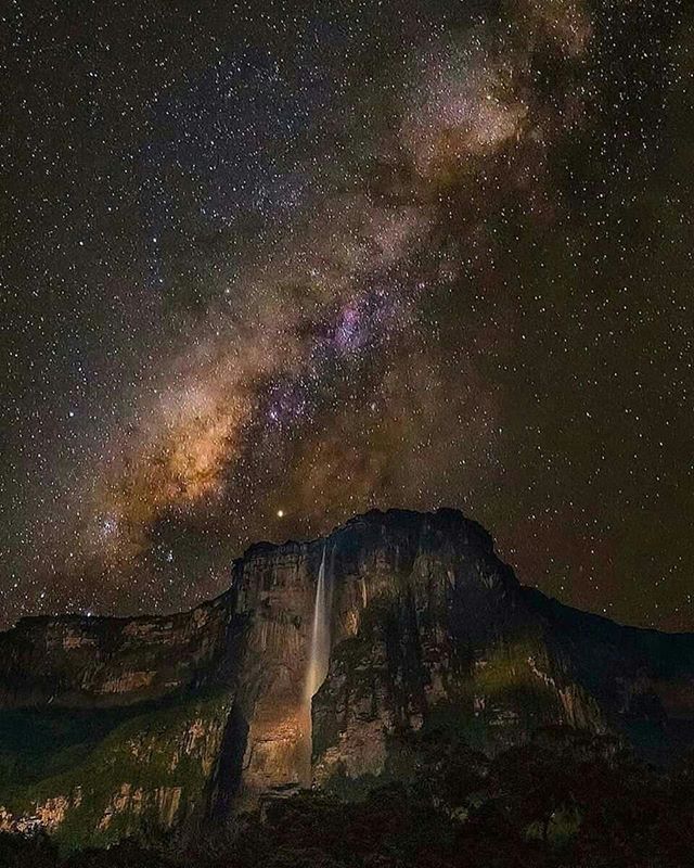 La excelente imagen que adorna nuestra portada nos muestra el tepuy más grande de la formación Roraima, el salto de agua más alto y el centro de nuestra galaxia… extraordinaria conjunción que nos presenta la entrega que hace la Madre de todas las aguas desde la Morada de los Dioses y el inmenso torbellino que ata nuestra presencia en el Universo.